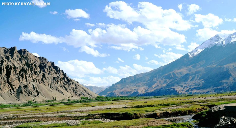 Follow the Panj River through lush valleys. Visit Chashma Shalak hot springs before arriving in Kapkot Village.