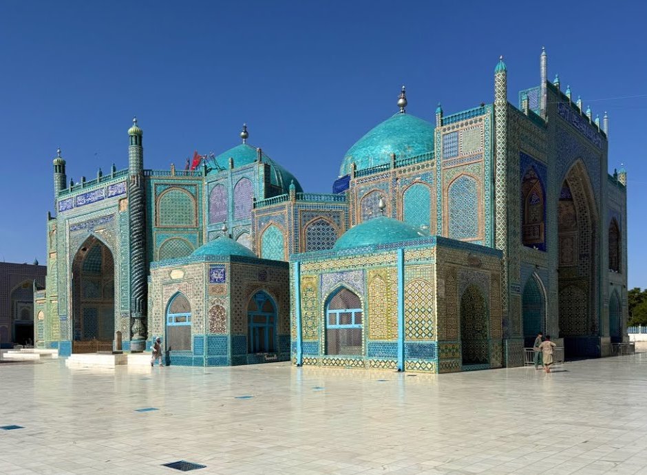 Iconic turquoise-tiled mosque and spiritual center of northern Afghanistan.